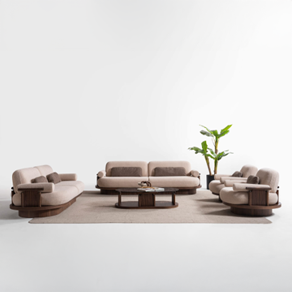 3+3+1+1. , mesures : 2,30m. , Bois : Noyer , Tissu : toile